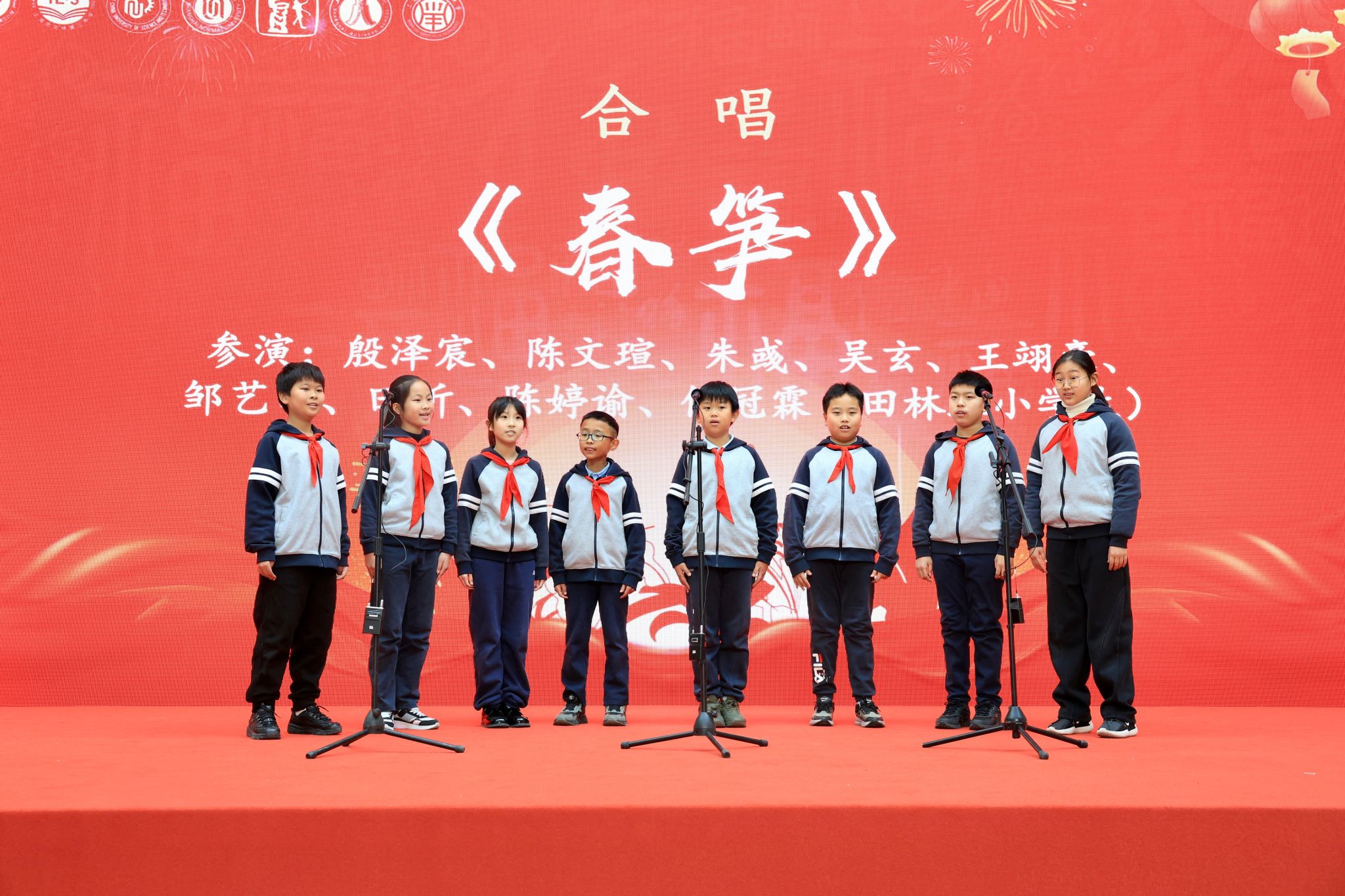 田林三小的同学们用纯真的童声合唱《春笋》,清新自然的歌声如同一股清泉,展现出孩子们蓬勃向上的朝气,恰似破土而出的春笋,充满无限生机。上海师范大学的学生们以舞蹈《星火相聚》,用灵动的舞步、富有感染力的表演,诠释了青年学子们如星星之火汇聚在一起,共同为梦想拼搏的精神。