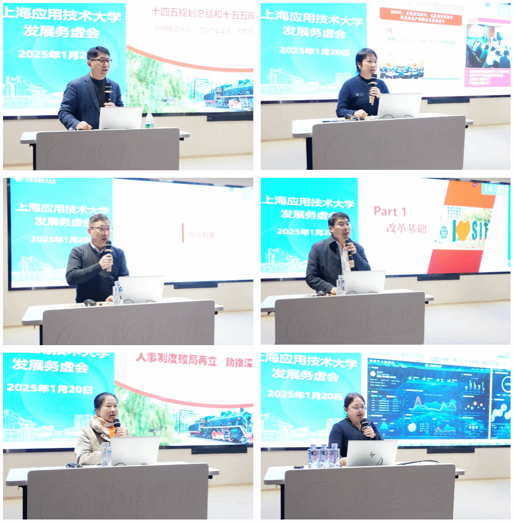 发展规划处、教务处、研究生院、科学技术研究院、教师工作部(人事处)、信息化技术中心分别针对“十五五”规划编制、本科人才培养模式改革、研究生培养质量提升、科技创新和成果转化、人事制度和人才发展、智慧校园建设等交流了目前推进的改革方案和成效进展以及未来的改革思路和务实之举。
