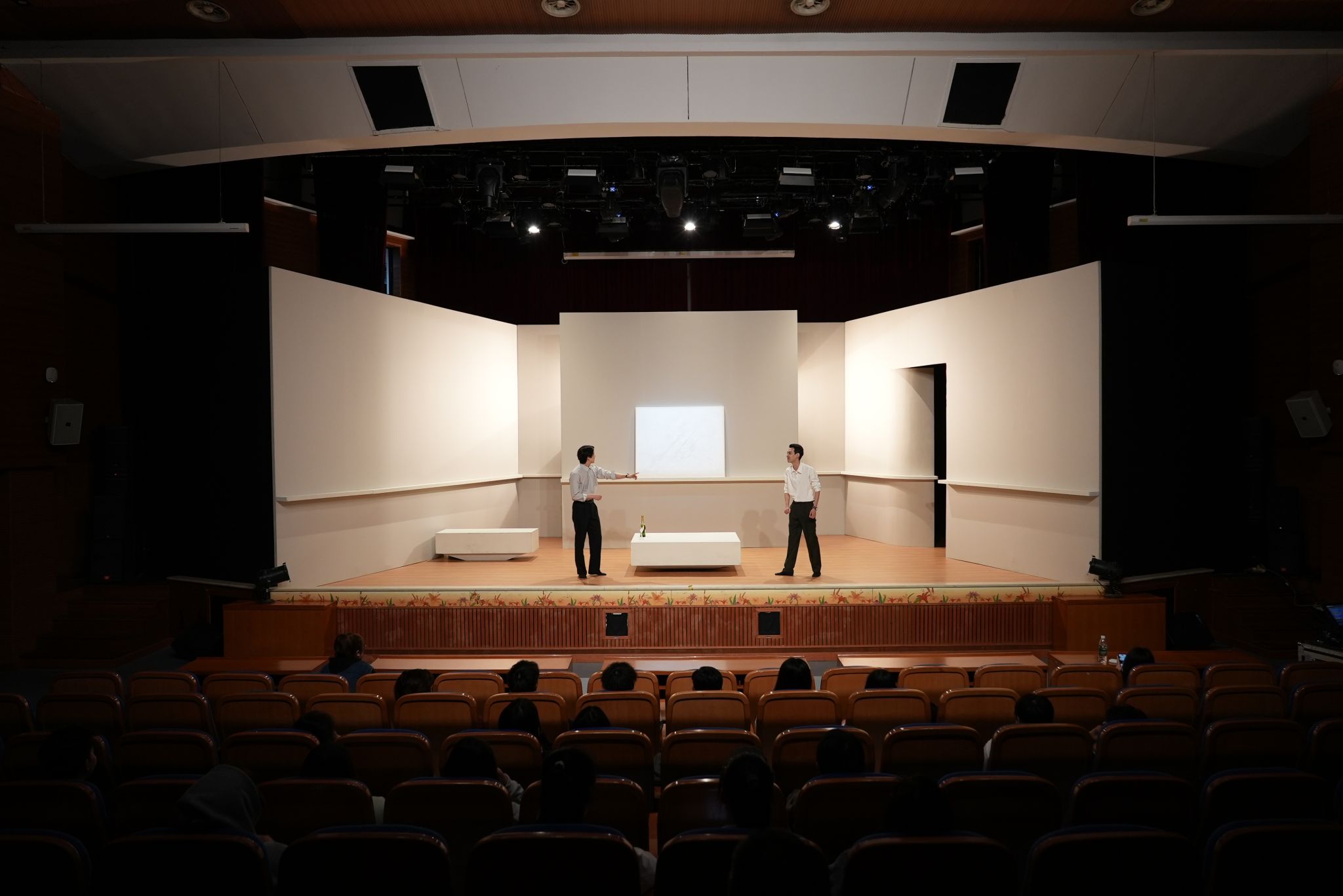 一幅现代派绘画作品究竟价值连城还是一文不值?三个男人、十五年老友感情,因对一幅白色油画的价值之争,让坚固的友情骤然崩裂。人性的舞台,一切从这幅白色油画开始……5月8日晚,由上海话剧艺术中心带来的话剧《艺术》在我校奉贤校区大学生活动中心多功能厅精彩演绎。校党委常委、宣传部长杨明和师生共同观看了演出。