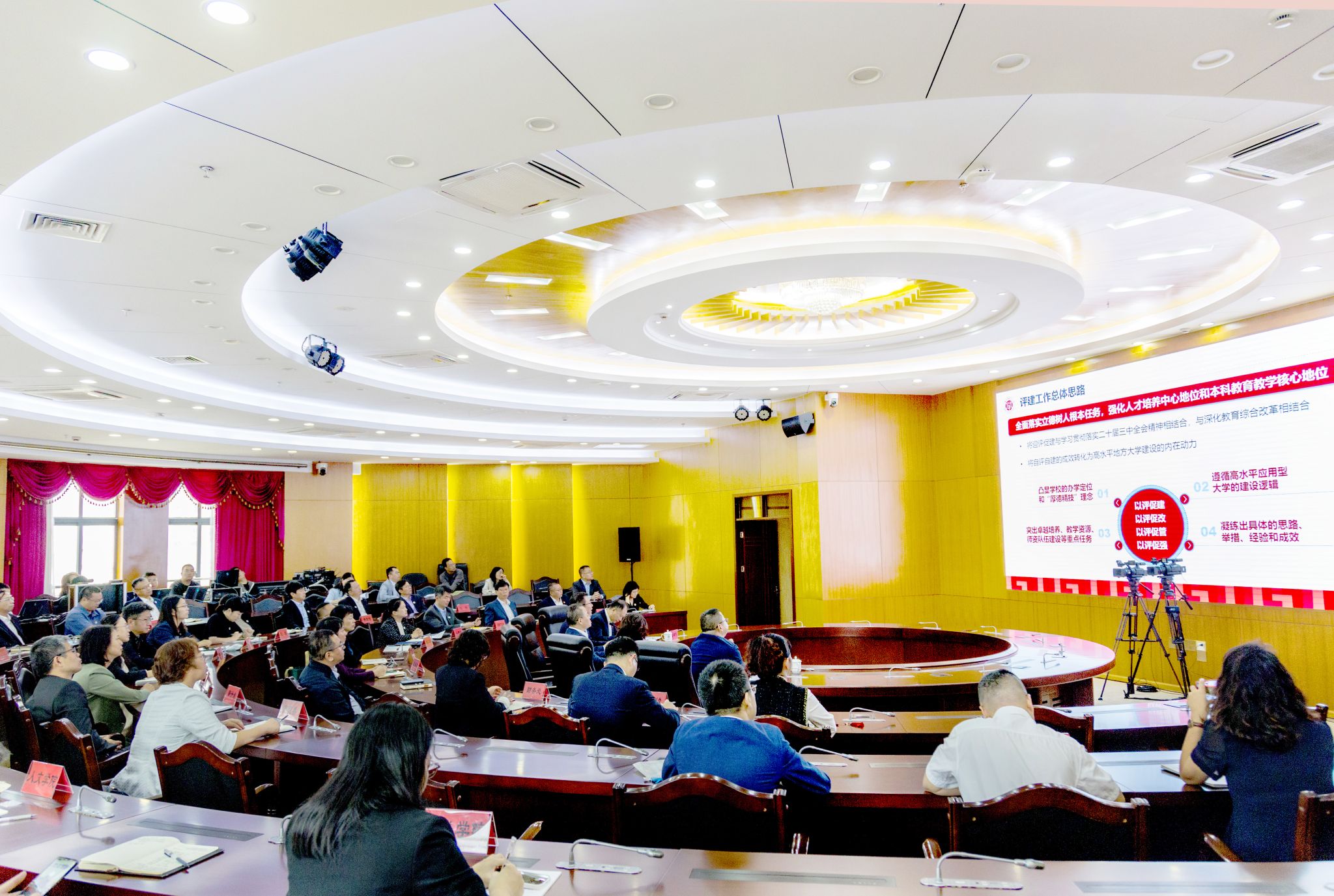 校长汪小帆围绕学校人才培养概况、自评自建成效以及学校本轮审核评估指标体系、常模高校选择等情况作了补充说明。他表示,学校启动新一轮审核评估评建工作以来,按照“全面动员、全员参与、全力以赴、全始全终”的工作要求扎实开展自评自建,全面落实立德树人根本任务,强化人才培养中心地位。学校将迎评促建与学习贯彻党的二十届三中全会精神和深化教育综合改革相结合,将自评自建的成效转化为高水平地方大学建设的内在动力,奋力谱写实现内涵式高质量发展新篇章。