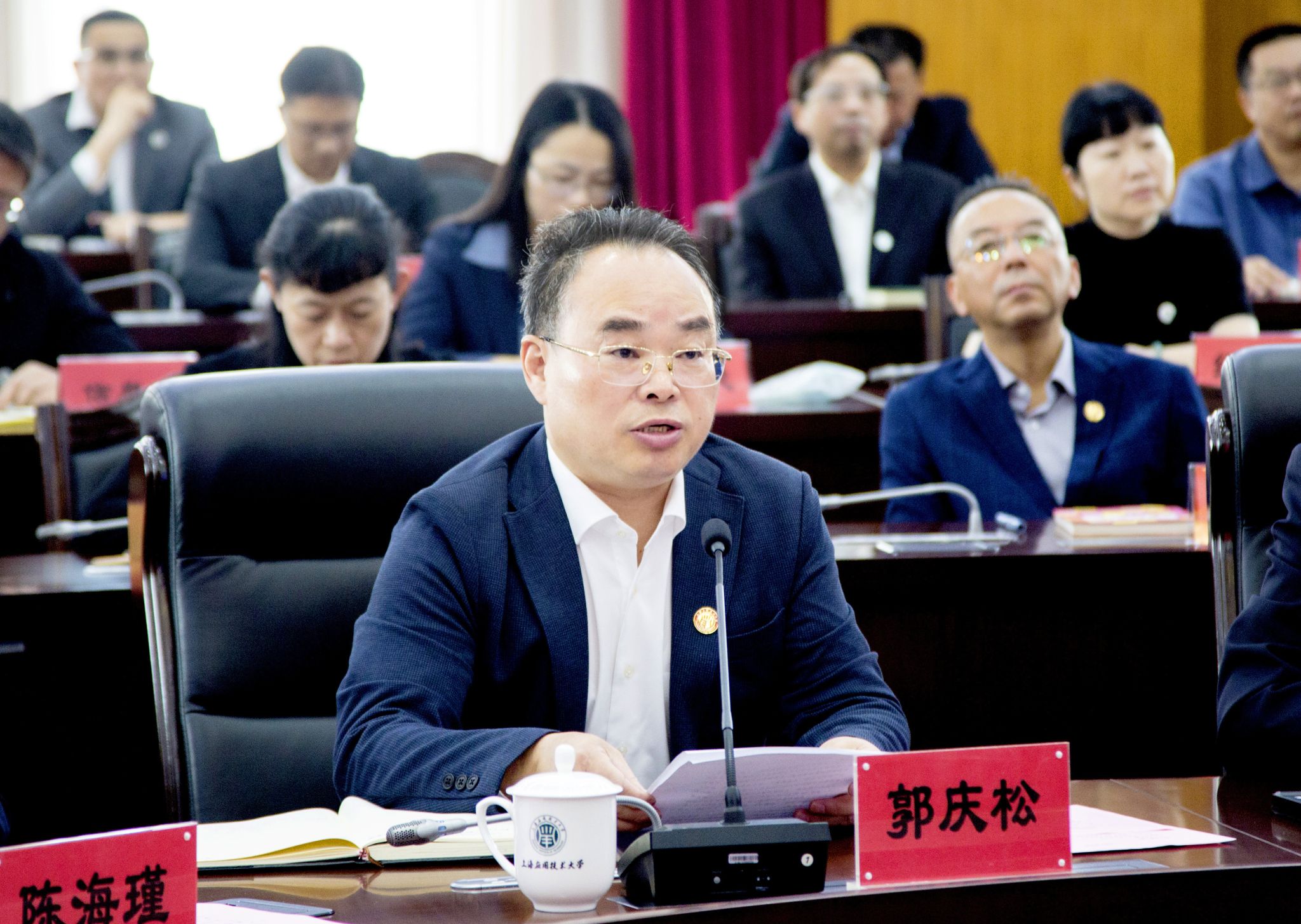校党委书记郭庆松向莅临会议的领导和专家表示欢迎和感谢。他表示,学校正在深入学习贯彻党的二十届三中全会精神、十二届市委五次全会精神以及全国教育大会精神,以改革创新加快推动高质量发展,全力回答好“强国建设,上应何为”的时代课题。此次审核评估是对学校本科教育教学改革成效的重要检验,也是对学校进一步提升办学水平的有力促进。学校将坚定落实“以评促建、以评促改、以评促管、以评促强”方针,全力配合线上评估工作,全面吸收专家组意见,认真整改、严格落实,不断开创学校高质量发展新格局。