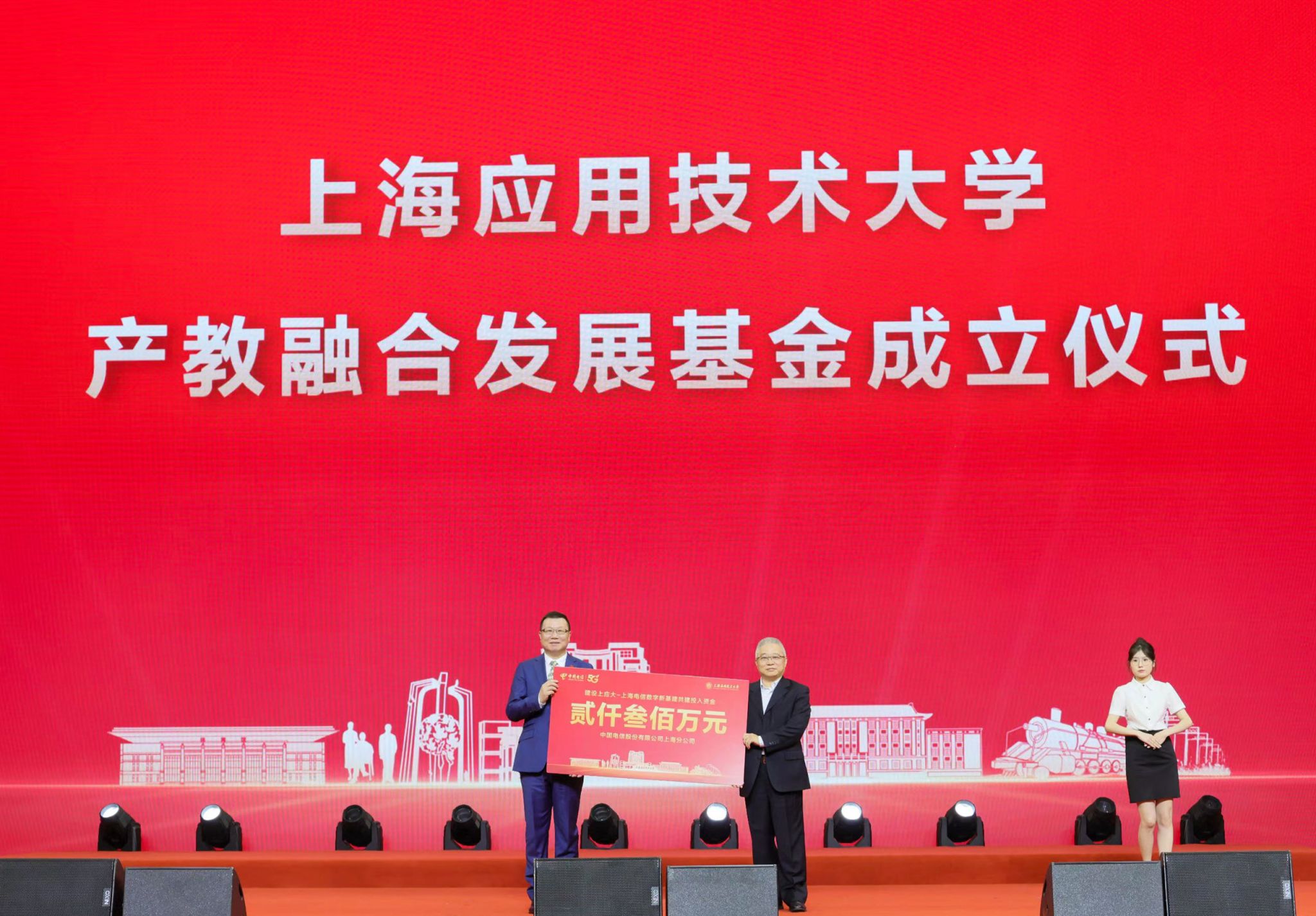 发展基金成立仪式上,中国电信上海分公司出资2300万元、中国联通上海分公司出资2300万元、上海亮威照明科技股份有限公司出资1000万元,共同设立产教融合发展基金,助力学校办学事业发展。汪小帆代表学校,接受中国电信股份有限公司上海分公司党委委员、财务总监、总法律顾问王海建,中国联通上海分公司党委委员、副总经理刘彤,上海亮威照明科技股份有限公司董事长汤雄的捐赠。