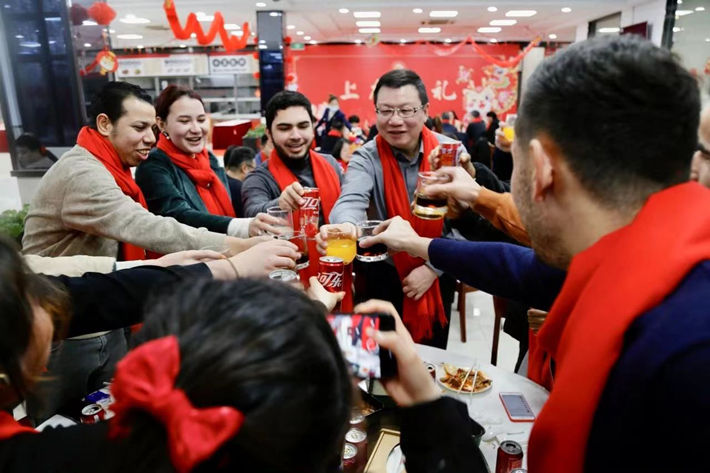 年夜饭是中国传统文化中最隆重、最热闹、最重要的一餐,代表着对新一年的美好祝愿和期待。在包饺子环节,老师和同学们共同包的饺子中,有10个特别的饺子藏着一颗花生米,寓意着“好事发生”。从菜单的设计到菜品的选择,学校都做了精心准备,汇聚五湖四海、南北风味,饱含着学校对同学们的祝福和心意。同学们积极参与前期筹备,到现场体验花式水饺、摆盘等,体现了学子对中国传统文化的传承和弘扬。