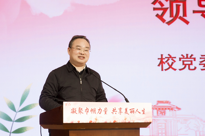 3月8日,学校举行“凝聚巾帼力量 共享美丽人生”——纪念“三八”国际妇女节114周年暨女教授女干部论坛。校党委书记郭庆松出席并讲话,校党委副书记、副校长王瑛致辞。