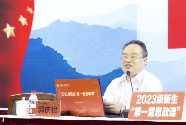 今天(10月7日)上午,校党委书记郭庆松为2023级全体本科新生讲授题为“文化传承铸根魂,拥抱未来写青春”的“第一堂思政课”,帮助新同学们在思想上扣好人生“第一粒扣子”,以高昂的精气神开启人生新篇章。