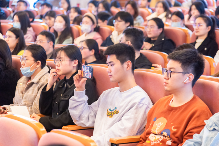 现场师生围绕食品和化妆品制造领域的相关问题踊跃提问和讨论,陈坚院士给予热情解答和互动,会场气氛活跃。