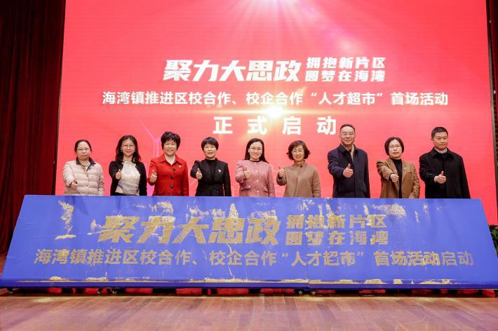 为深入学习贯彻落实党的二十大精神,践行习近平总书记关于讲好用好新时代“大思政课”的重要指示,汇聚全社会育人合力,推进区校合作、校企合作,建设“大课堂”、搭建“大平台”,助力青年成才成长创新创业,赋能区域高质量发展,2月24日,“聚力大思政· 拥抱新片区·圆梦在海湾”海湾镇推进区校合作、校企合作项目启动仪式暨“人才超市”首场活动在我校大学生活动中心举行。
