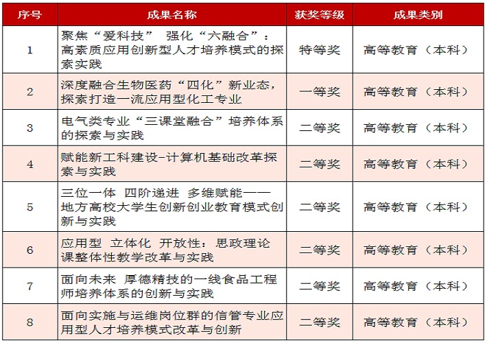学校始终坚持“应用导向、技术创新”特色定位,在与行业企业协同开展科技创新的过程中不断提升人才培养质量,全面推进“爱科技”“六融合”“双协同”应用创新型人才培养模式改革,在强化思政教育、推动“四新”建设、探索教学创新等方面形成了丰富的实践经验和显著育人成效。此次获奖的成果是其中的典型代表,凝聚着广大教师潜心教学、富于创造的劳动结晶。