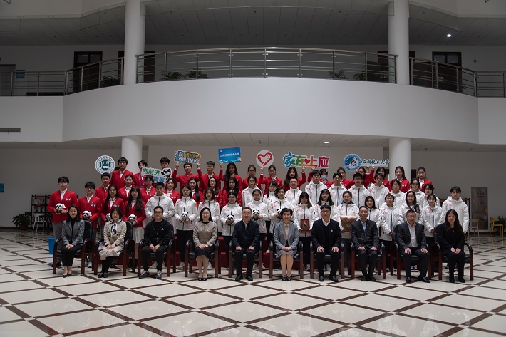 11月18日,校党委书记郭庆松,校长柯勤飞,校党委副书记、副校长王瑛亲切慰问我校第五届中国国际进口博览会志愿者“小叶子”们。