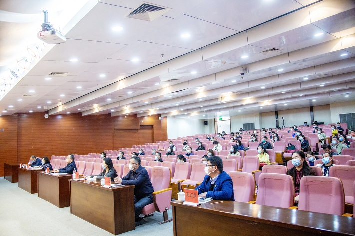 会议在徐汇校区和奉贤校区设立了两个会场,全体校领导、全体校党委委员、全体中层干部、全体党支部书记参加学习会。