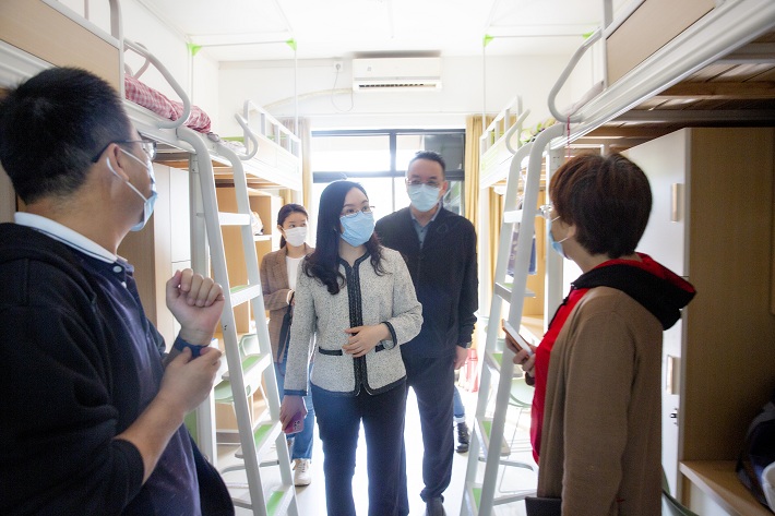 11月10日上午,校党委副书记、副校长王瑛带队对奉贤校区“一站式”学生社区综合管理试点建设区域开展现场调研,校党委学工部部长袁翔、财务处处长王敏飞、资产与实验室管理处处长姚国英、安全保卫处处长宋明枫、后勤保障与服务中心主任杨军及基建处有关人员等陪同调研。