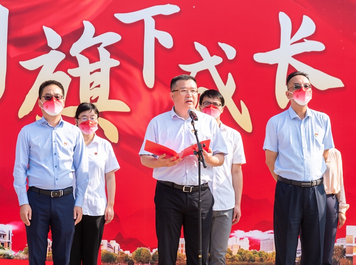 10月1日晨,学校隆重举行“国旗下成长——青春献礼二十大,强国有我新征程”庆祝新中国成立73周年升国旗仪式,校党委副书记、纪委书记李健出席并致辞。党委学工部部长、学生处处长袁翔,人民武装部部长、安全保卫处处长宋明枫等相关部门负责人参加,校团委书记周青主持。