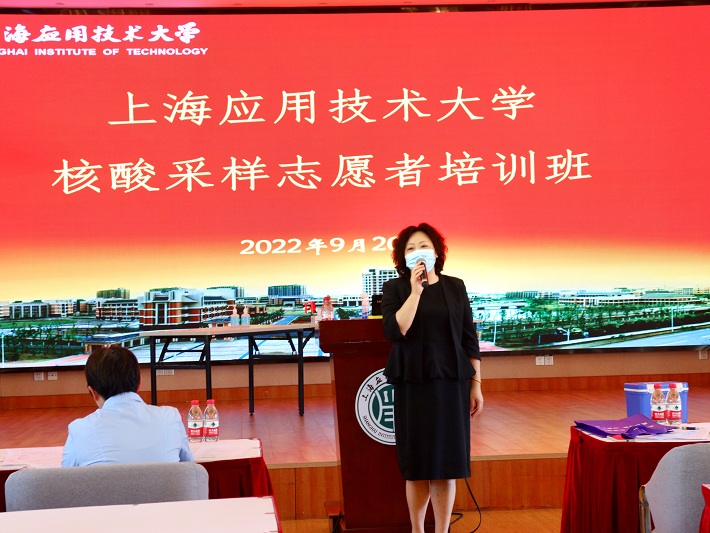 陈海瑾对参加培训的学员提出要求,要严格遵守培训纪律,认真听讲,做好培训记录,扎实掌握核酸采样理论知识和熟练正确完成实操考核。她希望大家以饱满的热情投身到核酸检测工作中去,不断提升志愿者采样工作的熟练度和精确度,为学校和属地的疫情防控工作作出贡献。
