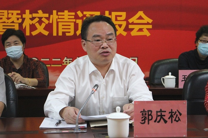 金风送爽重阳到,菊香情浓意悠长。在中华传统节日重阳节前夕,为弘扬敬老爱老的中华传统美德、向老同志传递学校的关心和组织的温暖,9月27日,学校举行2022年敬老节座谈会暨校情通报会,校党委书记郭庆松出席并讲话,校党委副书记陈海瑾主持。学校退局干部、全体退休支部书记、关工委特邀党建组织员、退休教授代表及离退休工作委员会工作人员参加。