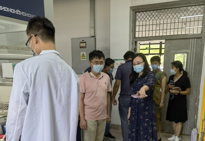 检查组重点检查了化工学院科研实验室、有机化学试剂暂存实验室及材料学院科研实验室,认真察看了学生实验个人防护、实验室应急喷淋、危化品存储使用、水电和消防安全管理等方面工作。针对检查中发现的问题,要求各单位明确责任人,针对性做好整改方案,即时解决,对屡次不整改的实验室要采取更为严格的整治措施。