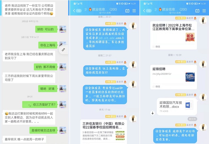 针对疫情期间的招聘特点,学校精心构筑“校级-区域-企业-行业”四维一体的就业市场格局,释放线上校园招聘活力。开展“春风度玉门,就业零距离”2022年春季网络招聘会,1200余家企业参与云招聘,发布线上岗位19000余个,需求人次35000人次。发布《致用人单位的一封信》,公布学校最新招聘方案,主动对接重点区域人社部门、联合各重点企业,相继开展临港-漕河泾开发区、上海化工区、外高桥保税区、上海正大集团、上海医药集团等空中双选会、企业线上宣讲会200余场。