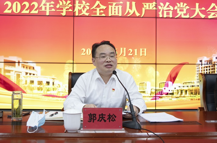6月21日,学校召开2022年全面从严治党大会,传达学习上级会议精神,回顾总结2021年学校全面从严治党工作,研究部署2022年任务。校党委书记郭庆松出席并讲话,校党委副书记、校长柯勤飞主持会议。