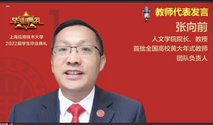 首批全国高校黄大年式教师团队负责人、我校人文学院院长、博士生导师张向前教授代表全校教师发言,表达对全体毕业生的殷切期望和真诚祝福,希望同学们胸怀“国之大者”,从基层做起,从小事做起,积极主动承担更大社会责任,为国家富强民族复兴贡献智慧和力量,成为无愧于时代的科学家、企业家或政治家,期待着同学们的捷报频传!