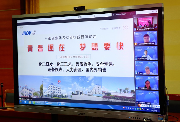 一诺威集团有限公司、花王(上海)化工有限公司、上海东睿化学有限公司、上海抚佳精细化工公司和上海奥威日化有限公司分别就企业概况、企业文化、发展历史及招聘岗位需求等做详细宣讲。毕业生就关心的问题与企业积极互动提问。