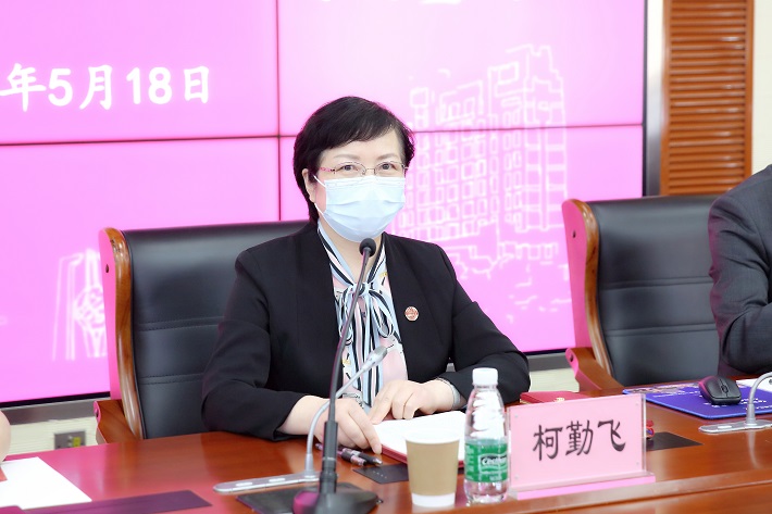 柯勤飞代表学校对参会企业代表表示感谢和问候,重点介绍了学校发展定位和概况。她指出,学校始终坚持“应用导向、技术创新”的特色定位,秉承“依产业而兴、托科技而强”的办学理念,近几年在科研、教学和学科建设等领域取得佳绩。碳谷绿湾产业园五大主打产业与我校优势学科高度匹配,双方还具有“人文相亲、地理相近”的优势。