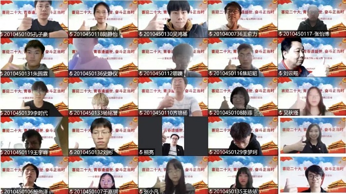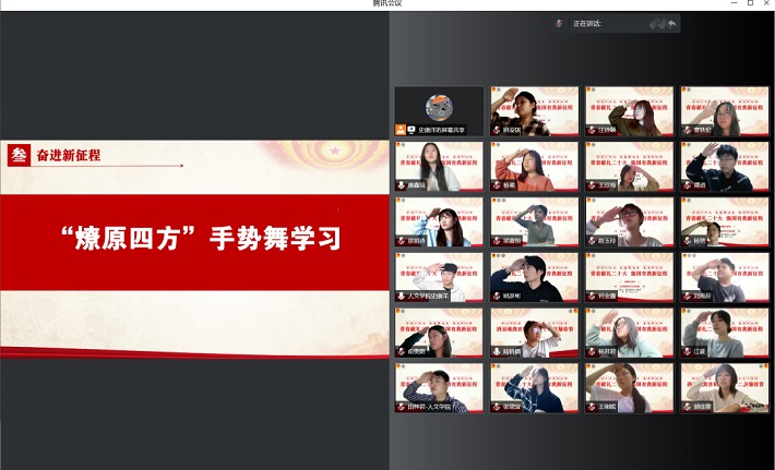 在喜迎党的二十大胜利召开和庆祝中国共青团成立100周年之际,学校组织开展“喜迎二十大、永远跟党走、奋进新征程”五四集中主题云团日活动,深入学习习近平总书记考察中国人民大学重要讲话精神,持续深化党的百年奋斗重大成就和历史经验学习教育,激励全校共青团员争做堪当民族复兴重任的时代新人。