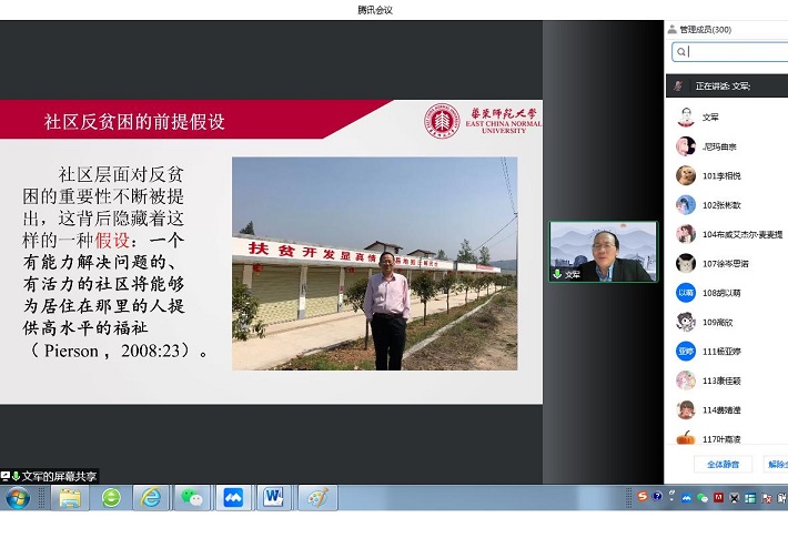 近日,学校举行迎校庆“大师风云”系列学术报告会,华东师范大学社会发展学院院长文军教授应邀以“社区为本的社会工作模式及其本土应用——以脱贫攻坚和乡村振兴为例”为题主讲。校科研院院长韩生主持,人文学院、经管学院、马克思主义学院、党委宣传部和校科研院等单位相关负责人和师生代表线上聆听。 文军曾赴甘肃平凉市、云南寻甸县等扶贫点开展脱贫攻坚工作调研,主持撰写《社区为本的反贫困社会工作研究》一书。他在报告中表示,“社区为本”反贫困社会工作,在脱贫攻坚工作中发挥着越来越重要的作用,其在理论上主要表现为本体论层面“共同体取向”,方法论层面“中观路径”以及价值论层面“公平精神”;以援助取向、增能取向、解放取向、解构取向四种理论取向,构成其理论分析的基础框架。在实践上,“社区为本”的反贫困社会工作延伸出了支持性路径、赋权性路径、倡导性路径和反思性路径四重实践干预路径。“社区为本”的反贫困社会工作以社区为主体,旨在借助社区成员的集体参与来整合社会资源,以多样化的行动策略回应社区的多元需求,促进社区的整体进步、乡村振兴和可持续发展,它是一种达致团结、互惠、尊重、平等、意识觉醒、能力提升的集体行动过程。