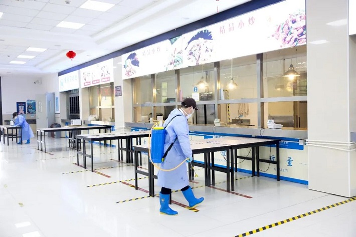 为进一步加强校园疫情防控,降低疫情传播风险,4月初,学校成立消杀工作专班,制定科学分工、责任明确的预防性消毒专项行动方案,组建由专业消杀和物业后勤保洁相结合的消杀队伍,并通过线上线下相结合方式,对消杀人员进行指导和培训。