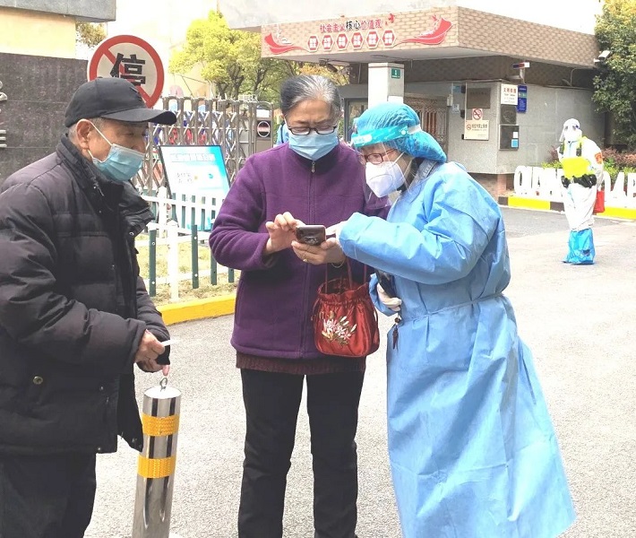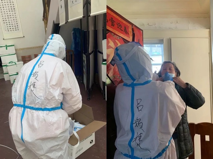 在工作过程中,吕频捷细心地发现楼道内有许多独居老人、或身患疾病需要帮助的人群,在做好相应的防疫措施后,总是主动帮助这些居民一一采样、检测,并耐心细致地教会他们检测方式以及后续登记方法后才离开。吕频捷表示,共产党员不仅仅是一种称号,更是一种责任的象征。