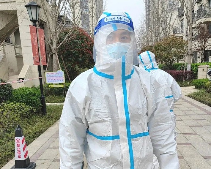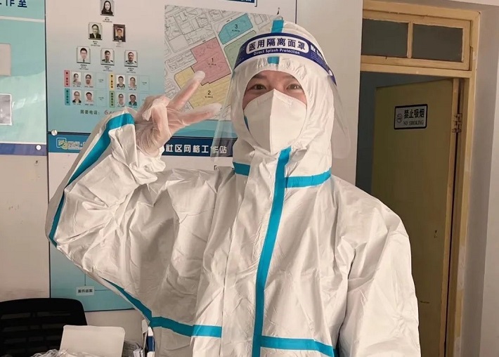 在得知村子里有一位瘫痪的老人无法到达核酸检测现场时,他徒步来回1公里,尽管防护服的鞋套磨破了、汗水灌满了整套衣服,他仍将老人接到现场,顺利完成了核酸检测。送回老人后,他又立马到达了新的岗位。疫情无情人有情,杨帅帅以自己的方式,做先锋,护上海!