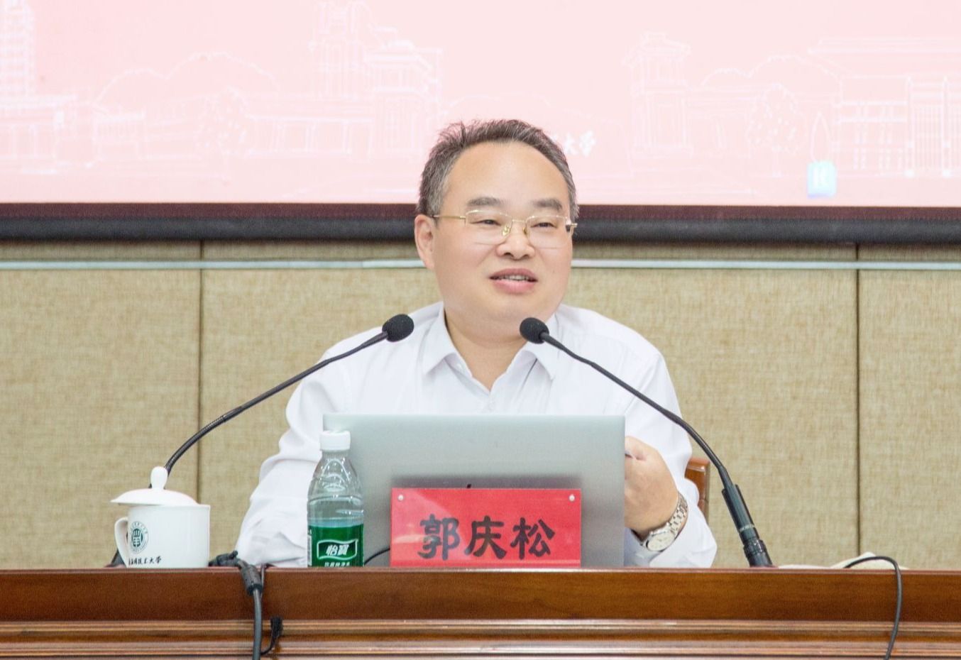 郭庆松重点传达了市委副书记朱忠明、市教卫工作党委书记沈炜在2025年秋季上海高校党政负责干部会议上的讲话精神,以《全力以赴 奋力一跳 深入推进学校高质量发展》为题对学校下半年工作提出要求。