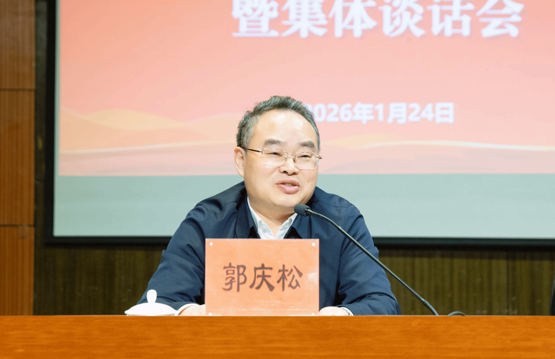 校党委书记郭庆松在讲话中充分肯定了换届工作成效,并深刻剖析了学校当前面临的“前有标兵,后有追兵,侧有强兵”的严峻竞争态势。他强调,全体干部必须牢固树立“慢进也是退”的危机意识,以奋起直追的实际行动,在新一轮发展中抢占先机、赢得主动。围绕新岗位、新使命,他对全体干部提出四点要求:一要对党忠诚,做政治坚定的“明白人”,持续提升政治判断力、领悟力和执行力;二要勇于担当,做干事创业的“带头人”,聚焦立德树人根本任务与学校发展目标真抓实干;三要提升本领,做务实高效的“实干家”,迅速进入角色,确保各项工作平稳高效推进;四要严守底线,做作风过硬的“清白人”,永葆清廉本色,共同维护风清气正的政治生态。